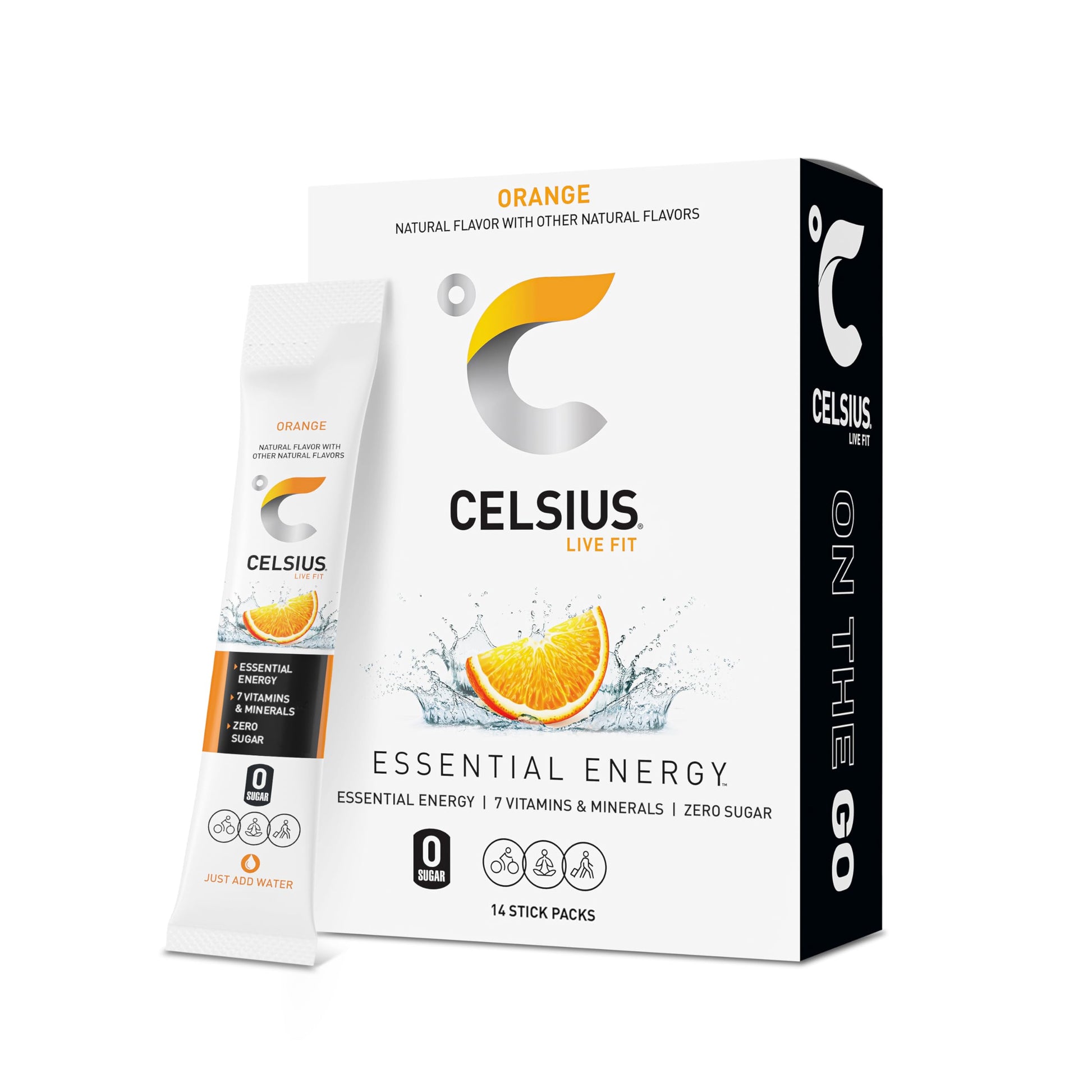 - You can never go wrong with the simple, fruit forward flavor of orange, and CELSIUS Orange On-the-Go Powder Sticks deliver the citrus energy boost when you need it most